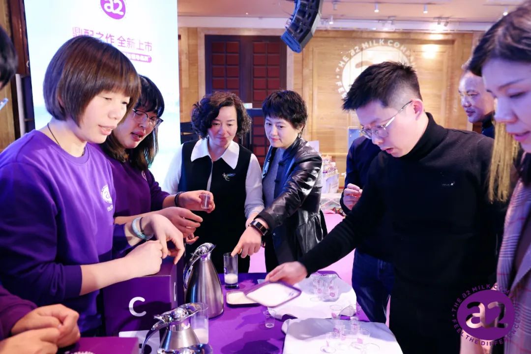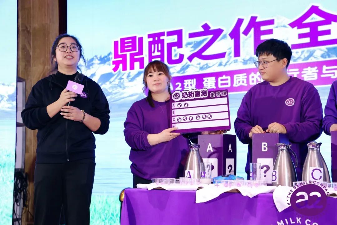 会议现场详细介绍了a2至初新国标的产品优势,同时安排了奶粉盲测互动活动,向大家展示了a2至初一流的口感和强大的产品力。