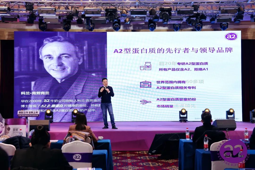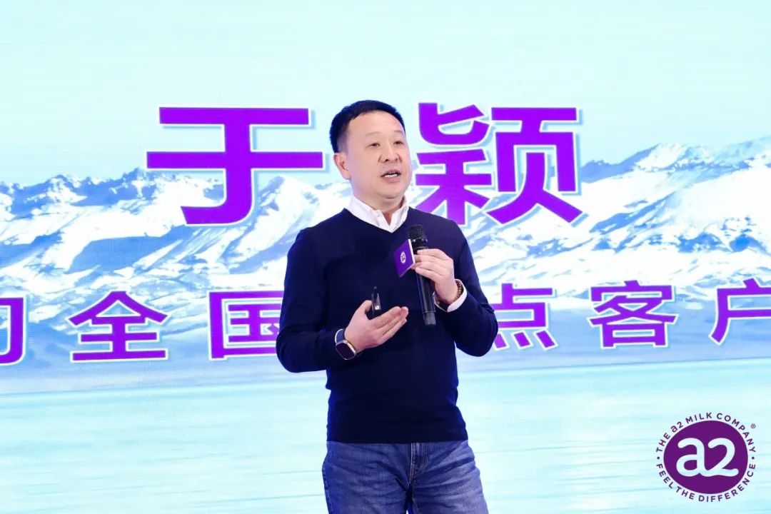 会上,于颖发表了热情洋溢的讲话。他分享了a2品牌的发展历程、产品特点以及在中国市场上的运营策略。他强调a2至初是a2型蛋白质的先行者和领导品牌,以科研为基础,致力于创造无a1型蛋白的健康牛奶。最近几年,尽管受到疫情影响,a2至初仍然在产品力、品牌力和渠道力方面强势发展,在竞争激烈的奶粉市场中取得了令人瞩目的销售增长。