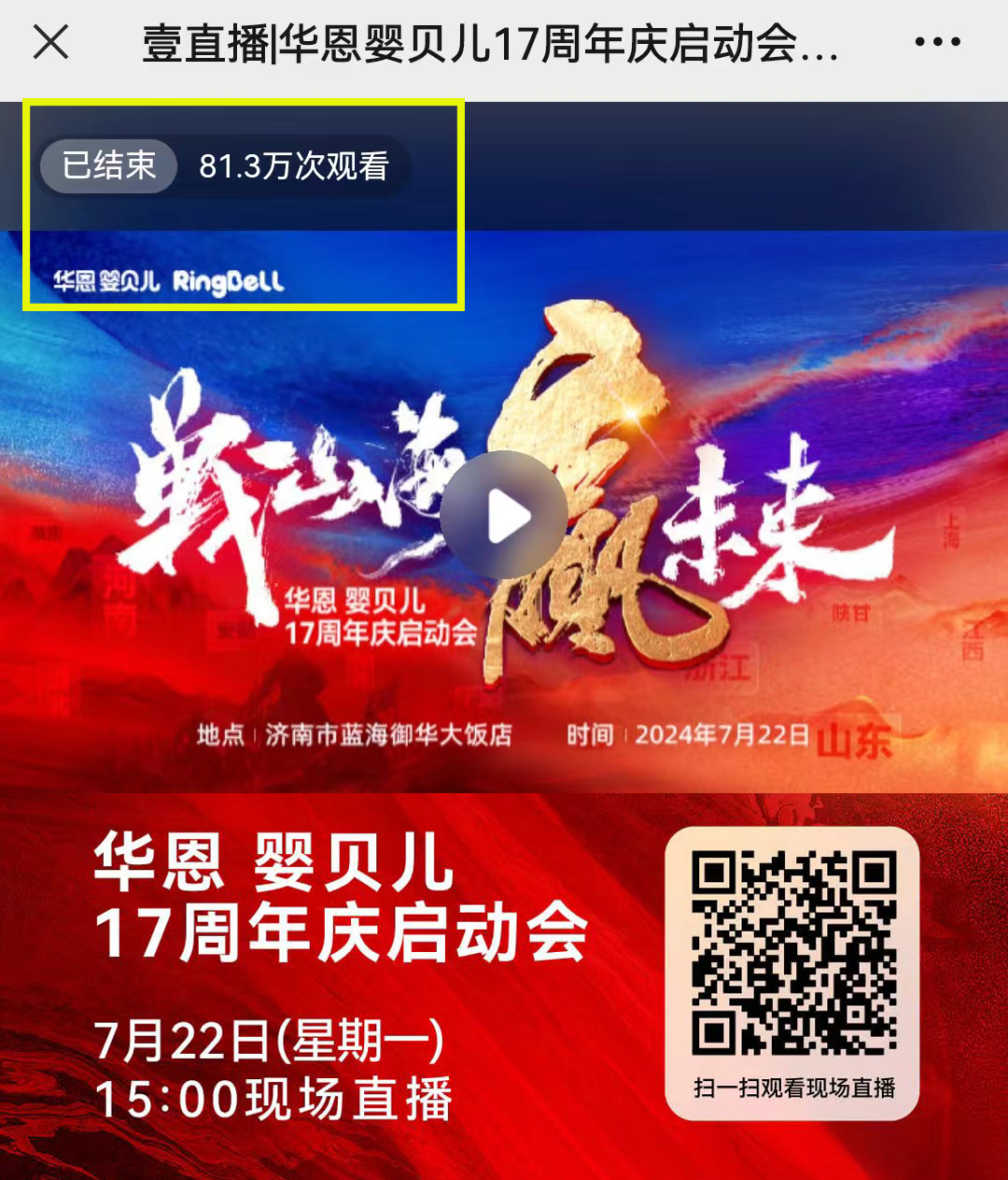 此次启动会,邀请到了齐鲁晚报·齐鲁壹点全程在线直播,也是华恩kaiyun.com17年来首次对外全程直播启动会盛况。通过直播让更多的人感受到华恩kaiyun.com企业文化的魅力以及华恩kaiyun.com人的精神风貌。本次直播实现了81.3万人次在线观看,错过的朋友也可以通过微信扫描二维码观看回放。